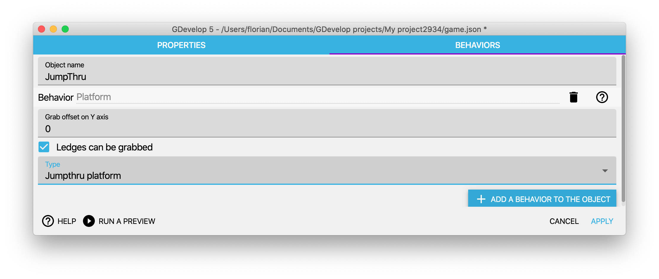 - Within the GDevelop Project, add a new object.
